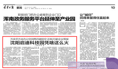 《遼寧日報》2017年04月21日A10版刊文——《萬余平方米辦公空間兩月被搶空還有20家企業(yè)等候 啟迪科技園(沈陽)憑啥這么火》