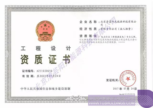 7月24日,啟迪清蕓喜獲電力行業(yè)(新能源發(fā)電)專業(yè)工程設(shè)計乙級資質(zhì),是北京市同批資質(zhì)獲此專業(yè)的唯一企業(yè)。標(biāo)志著啟迪清蕓新能源電力設(shè)計能力和工程總承包資質(zhì)得到了國家有關(guān)部門的認(rèn)證,可對外獨立承接新能源電力工程咨詢、設(shè)計、工程總承包等業(yè)務(wù)。