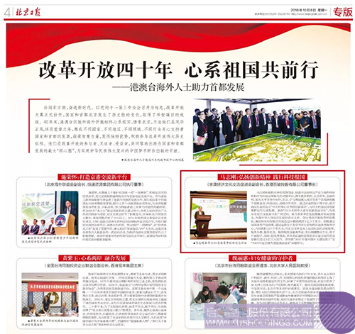 10月8日,北京日?qǐng)?bào)發(fā)表改革開放40周年專題文章《改革開放四十年 心系祖國(guó)共前行 ——港澳臺(tái)海外人士助力首都發(fā)展 》,文中報(bào)道京澳經(jīng)濟(jì)文化交流促進(jìn)會(huì)副會(huì)長(zhǎng)、啟迪控股董事、啟迪金控董事長(zhǎng)馬志剛作為港澳臺(tái)愛(ài)國(guó)企業(yè)家代表,多年來(lái)積極投身京港澳創(chuàng)新交流合作,助力華人青年創(chuàng)新創(chuàng)業(yè)。以下為相關(guān)報(bào)道內(nèi)容節(jié)選。