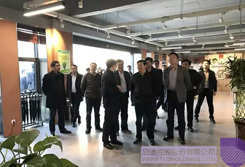 汪祥旺(前排左二)一行參觀啟迪時(shí)尚科技城