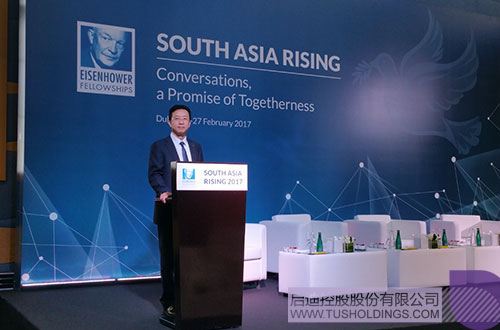 為了讓世界各國,特別是來自南亞地區(qū)國家的代表更深入地了解中國政府所推行的“一帶一路”倡議,美國艾森豪威爾基金會出資邀請啟迪控股常務(wù)副總裁陳鴻波赴迪拜出席主題為“對話,團結(jié)的意愿”的“南亞崛起”峰會,并特別安排其在開幕式后全體會議上第一個發(fā)言。來自美國、加拿大、澳大利亞、阿聯(lián)酋、納米比亞、南非、坦桑尼亞、幾內(nèi)亞、肯尼亞、英國、緬甸、愛爾蘭、孟加拉以及南亞六國等40多個國家的政府、學(xué)校、研究機構(gòu)以及產(chǎn)業(yè)界的代表近200人出席了會議。巴基斯坦前總統(tǒng)穆沙拉夫、艾森豪威爾基金會主席等重要嘉賓出席開幕式。